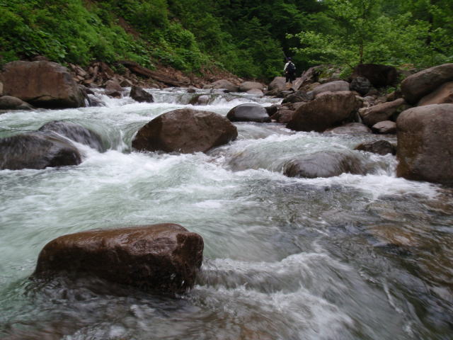 6月に入り左膝にはシップを左右2枚、リハビリの日々を送っていた。状態は少しずつ回復し渓に行きたい気持ちと、まだまだムリはできないという気持ちが交錯していた。そんな中、今回のメンバーであるけんちゃん(菊地副隊長)からメールが入る。