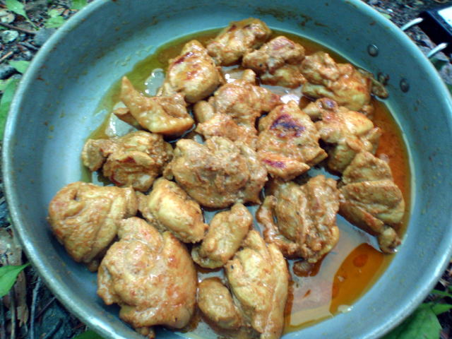 | テン場には他のパーティーのテントやらタープが張ってあり、昨日までとは打って変わって賑やかになっていた。聞くと地元秋田の方々で毎年この時期に来ているそうだ。挨拶を済ませ早速温泉へ。そこにも地元の方が1人休憩されていた。色々と話しをする中で、その方のお子さんが私の住んでいる川口に今いらっしゃるという話になり「お世話になっているから、これ持っていってください。」とその日に採れた大量の天然シイタケをいただいた。私が何かしているわけではないのに・・・と申し訳ない気持ちではあったが、そのやさしさに甘え、宴会のツマミとしておいしくいただいた。シイタケが苦手な隊長も「おっ!これは食える・・・。」と喜んでいた。 |