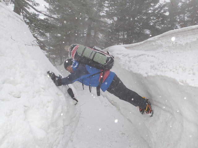 雪の状況によっては危険なトラバース、また山頂直下は懸垂下降なども必要になるようだ。